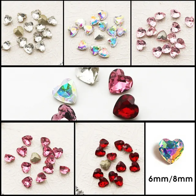 Free Shipping 10pcs Sweet Love Heart Glass Nail Art Crystal Top