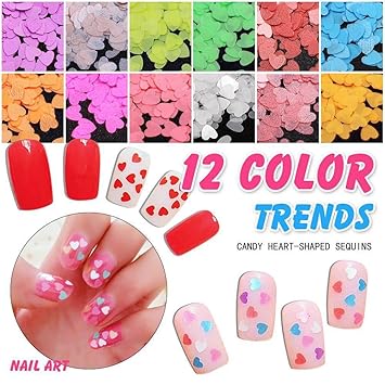 Amazon Com Mezerdoo 12 Mixed Color Love Heart Shape Nail Sequins