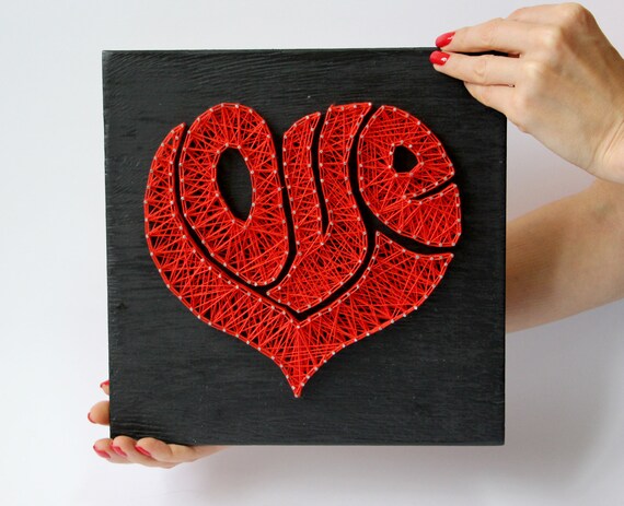 Red Heart Love Decor Nail And String Art Red Heart Love Etsy