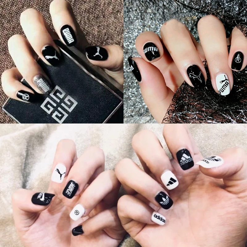 Black Fashion False Nails French Luxury Nail Patch Nail Art 24pcs