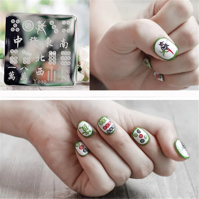 1pc Chinese Mahjong Pattern Nail Art Stamp Template Stamping Stencil