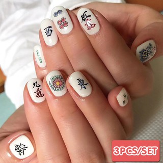 3pcs Set Chinese New Year Funny Nail Sticker Mahjong Nail Art