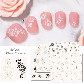 Amazon Com 50 Sheets 3d Nail Stickers Self Adhesive Tip Nail Art