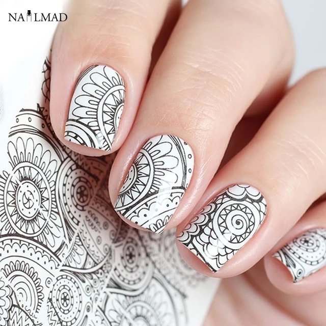 1 Sheet Mandala Nail Water Decals Black Mandara Nail Art Sticker