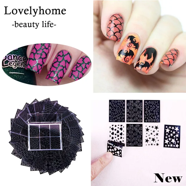 New Hollow Nail Vinyls Nail Stencil Stickers Transfer Guide Template