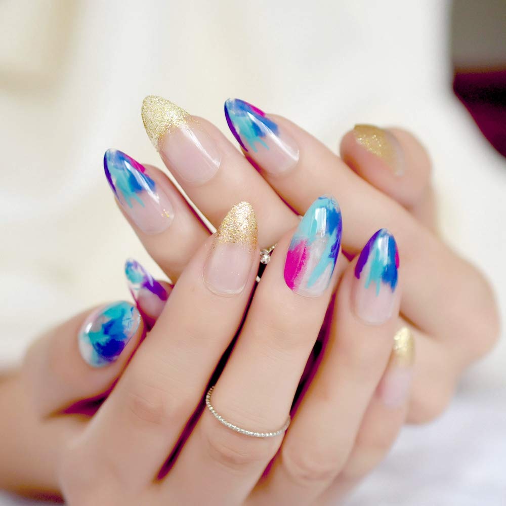 Amazon Com Pointed Stiletto False Nail Art Tips Nude Grey Marble