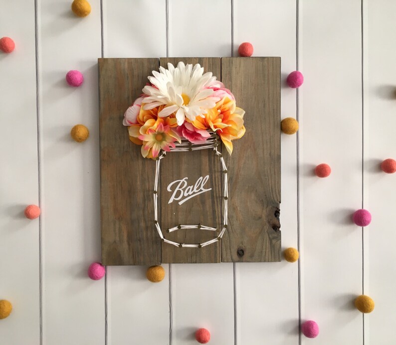 Flowers In Mason Jar String Art Nail Art Farmhouse Etsy