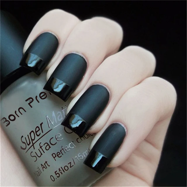 Nail Art Matte Black With Glossy French Tip It S My Life