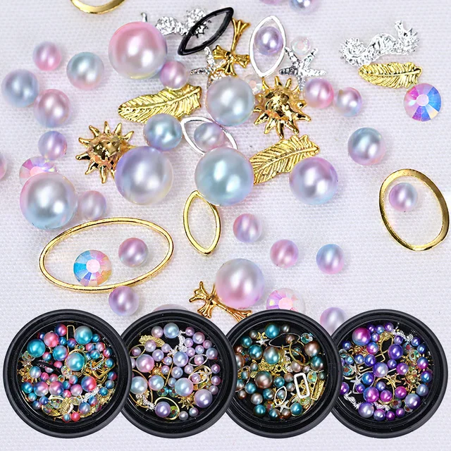 Mermaid Gradient Pearl Beads 3d Nail Art Decorations Multi Size Nail