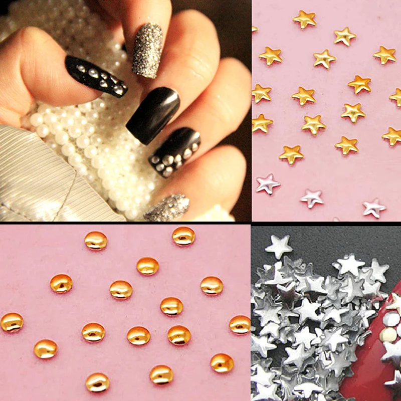 Ellwings Gold Mix Rivets Nail Art Decorations Star Moon Alloy Metal