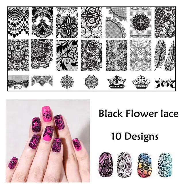10 Design Laced Series Metal Nail Art Stamping Image Konad Plate
