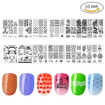 Amazon Com Mshier 10 Pcs Nail Stamping Plates 1 Stamper 1 Scraper