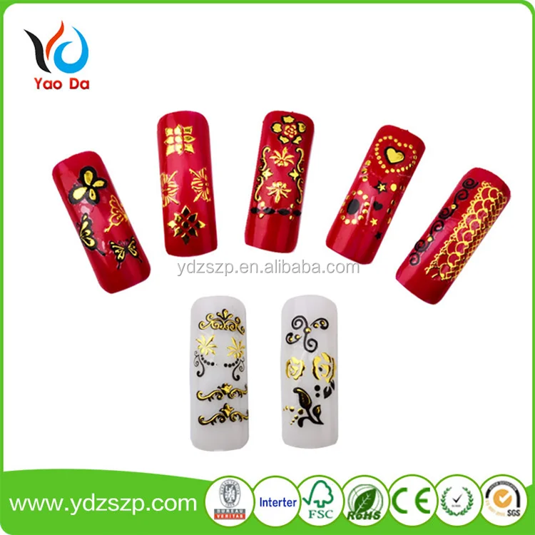Gold Silver Metal Rose Flower Nail Art Stencil Sticker Buy Nail