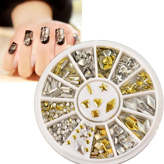 Gold Silver Metal Nail Art Stickers Decor Rhinestones Tips Metallic