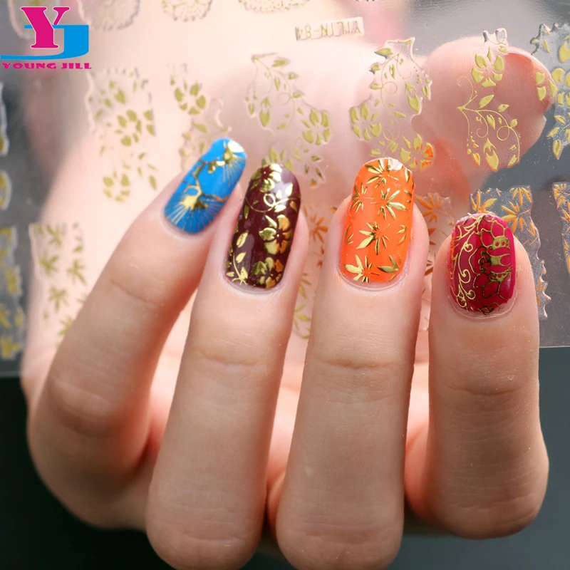 New Gold 3d Nail Stickers 108pcs Sheet Metallic Adesivos Mix