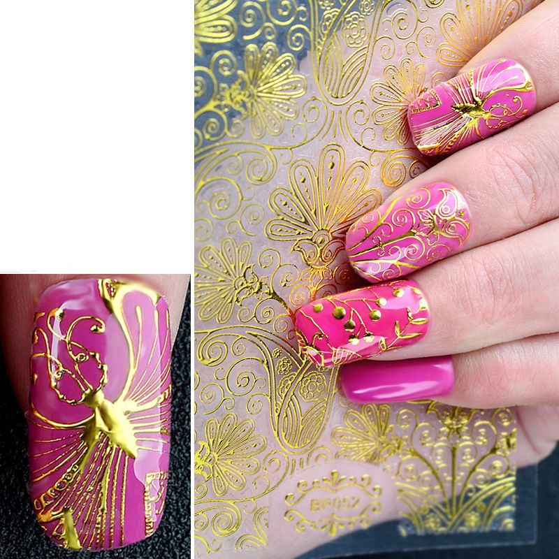 1 Sheet Embossed Flower 3d Gold Metallic Nail Stickers Design Nail