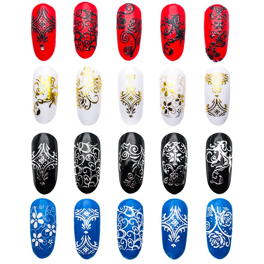 12 Sheets Metallic Hollow Gold Silver 3d Nail Art Stickers Flower
