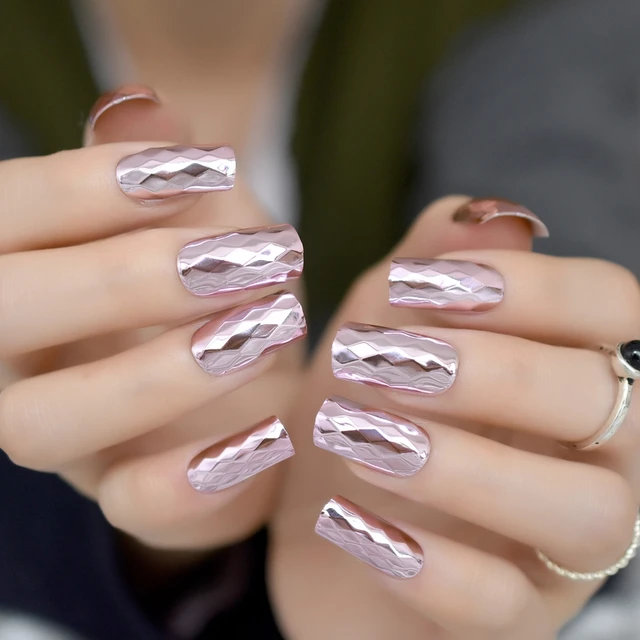 Detail Feedback Questions About Rhombus Metallic Nail Art Tips Pink