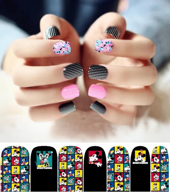 2 Sheet Mickey Minnie Print Nail Art Stickers Fake Nails Acrylic