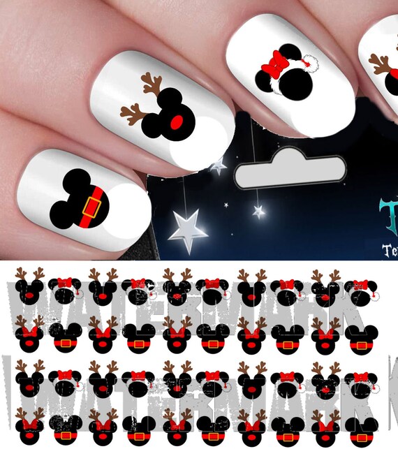 Disney Christmas Nail Art Reindeer Mickey Minnie Mouse Water Decals
