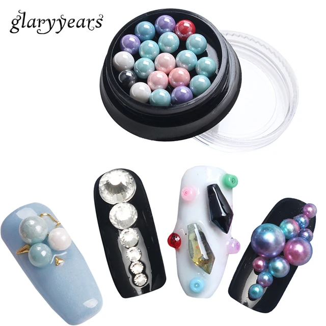 5 Designs 1 Box 3d Colored Beads Nail Art Accessories Pearl Crystal