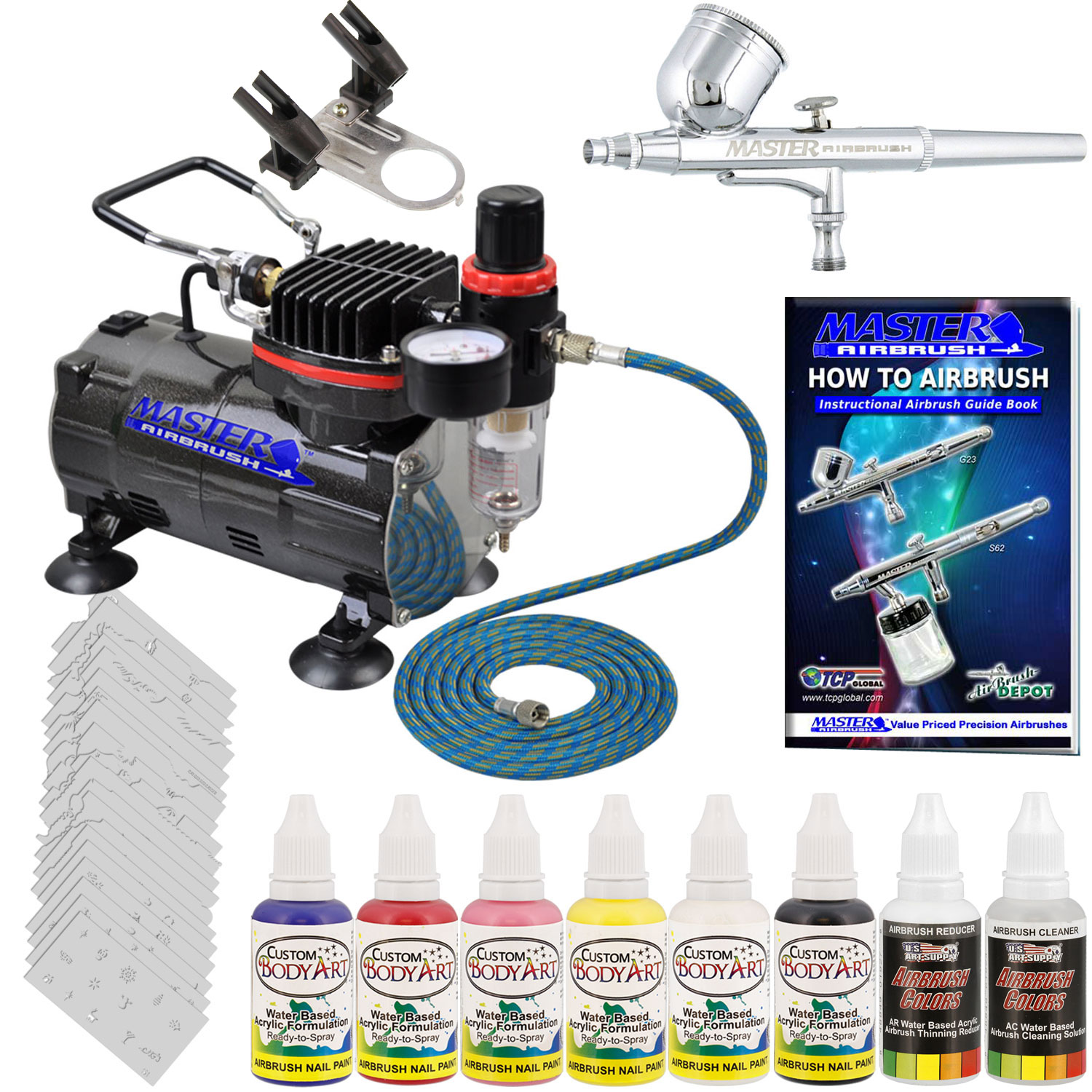 Ophir 0 3mm Nail Art Airbrush Kit With Air Compressor Inks 20