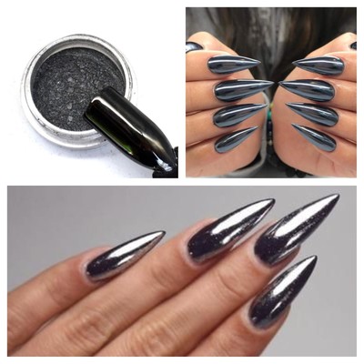 Black Chrome Mirror Pigment Powder High Shine With Applicator Nail Art Design Ebay
