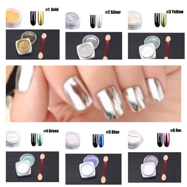 Multiple Colors Chrome Pigments For Nail Art Choose From 6 Beautiful Colors Includes Mini Sponge Brush Applicator Diy Nails Mirror