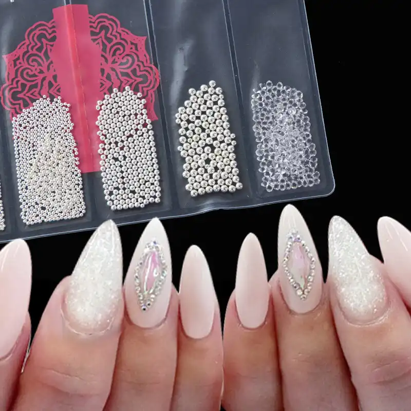Details About Nail Art Mini Beads Caviar Crystal Rhinestone Tips