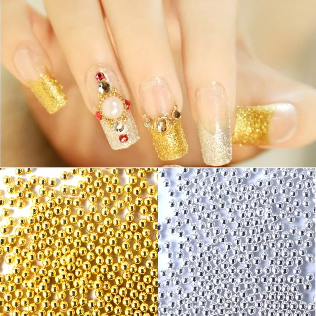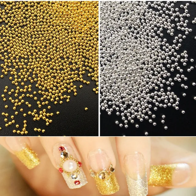 1 Pot Rose Gold Silver Metal Nail Art Caviar Beads Solid Shiny Steel