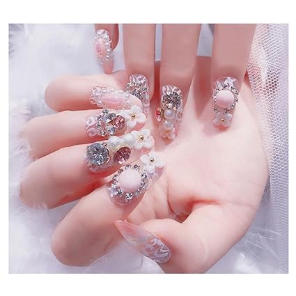 Amazon Com Luckyshd 24pcs 3d Flower False Nail Tips With Bling