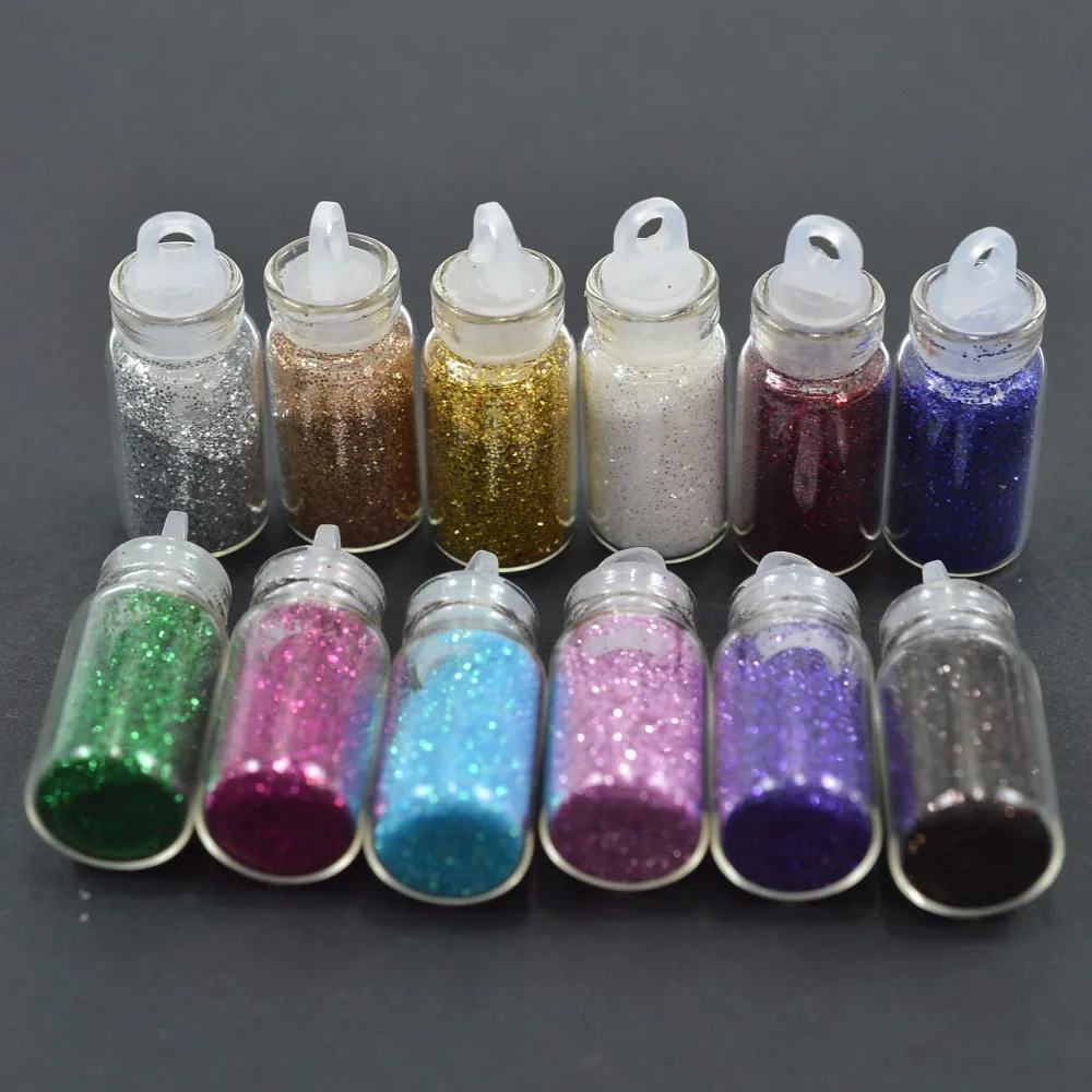 New 12 Colors Diy Glitter Powder Dust Tips Nail Art Bottle Sets 3d