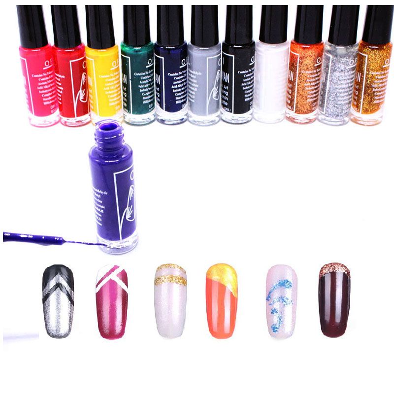 1set 12pcs Nail Art Striping Brush In Bottle 3d Drawing Paint
