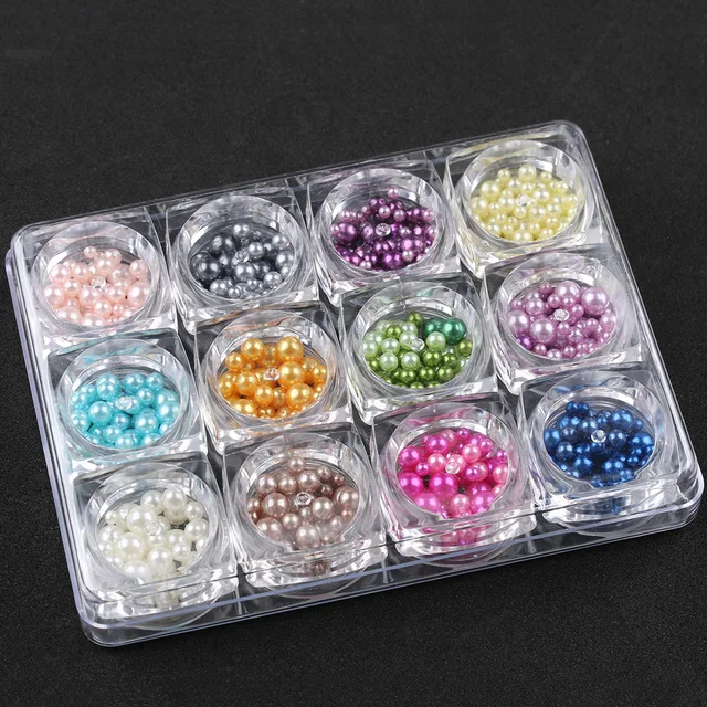 12 Boxes Set 3d Pearls Nail Art Tips Glitter Acrylic Manicure Diy Nail Stickers Decoration Nail Art Tips Women Nail Beauty In Rhinestones