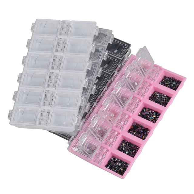 12 Grids Clear Empty Storage Nail Art Box Rhinestone Acrylic Crystal