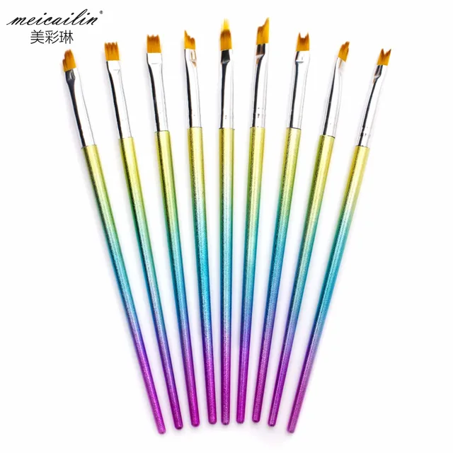 Meicailin 9pcs Set Gradient Nail Art Brush Kit Uv Gel Drawing Pen