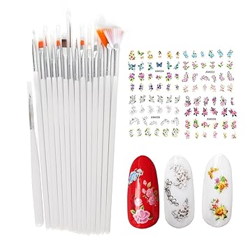 Amazon Com Glow 20 Piece Nail Art Brushes And Nail Dotting Tools