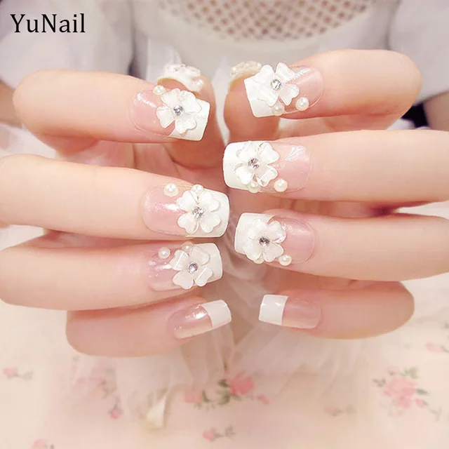24 Pcs Set Kuku Palsu Tip Nail Art Bunga Mutiara Decal Bridal