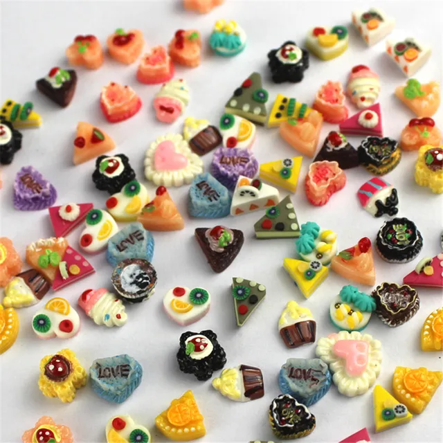 100pcs Mixed Colors Cute Cake Shape Nail Art Resin Decoration Ice