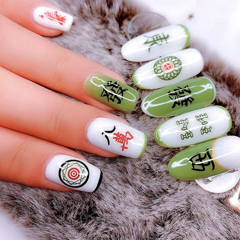 Chinese Character Adhesive Nail Sticker Decals Mahjong Design Nail Art Decorations Stickers Manicure Fake Nails Accessoires