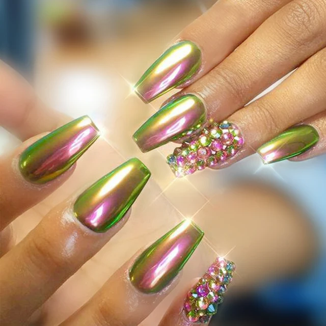 1 Bottle Magic Green Chameleon Mirror Glitter Nail Art Powder Shiny