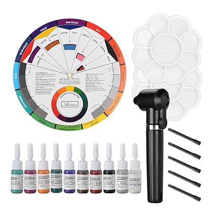 12 Colors Airbrush Nail Ink Pigment With Color Wheel 10ml Bottle