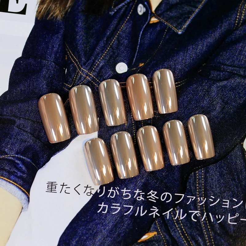 Metal Light Bronze Coloured Color False Nails Pre Designed Flat Head