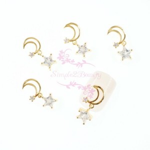 5 Dangle Style Hollow Moon Star Zircon Alloy Charms Nail Art Jewelry