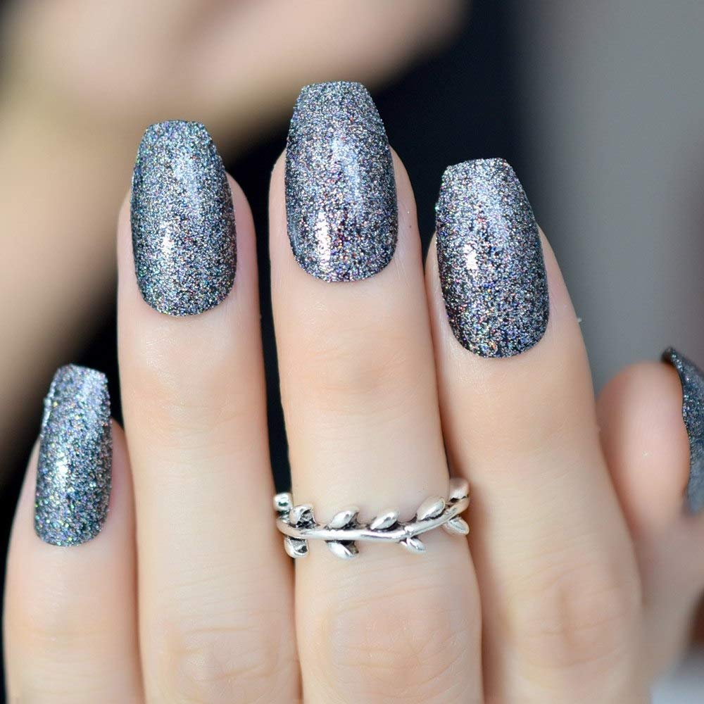 Amazon Com Glitter Slice Coffin Fake Nail Art Dark Pink Square
