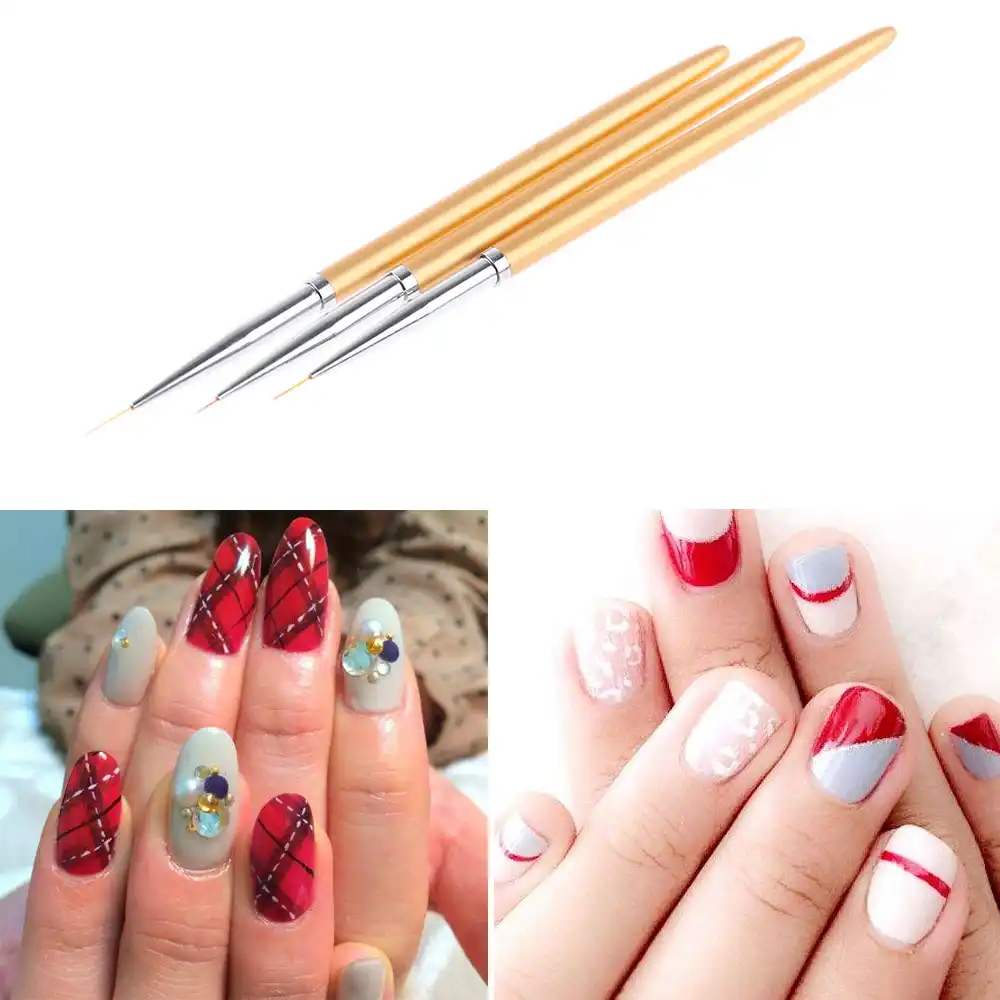 3pcs Set Nail Art Liner Painting Pen 3d Tips Diy Acrylic Uv Gel