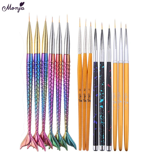 Monja Nail Art Matel Mermaid Wood Handle Liner Painting Brush Flower