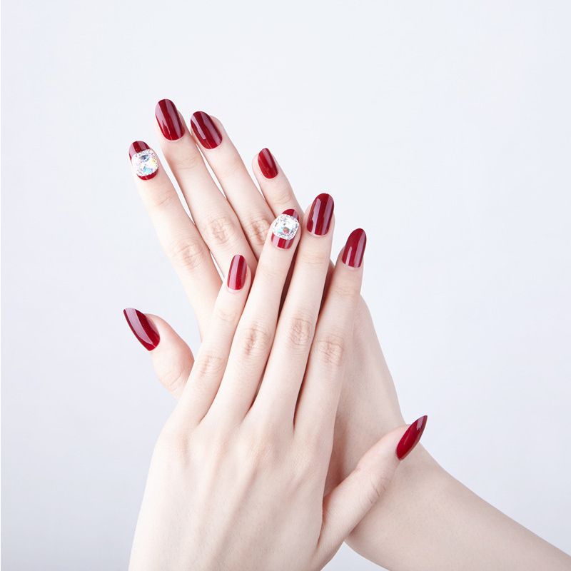 Pretty Wine Red Diamond Bride Nail Art Tips Pre Design Round Head