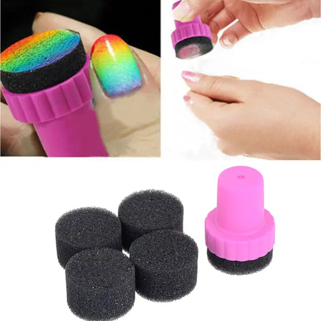 1 Set Diy Nail Art Design Stamping 1 Stamper 4 Changeable Sponge