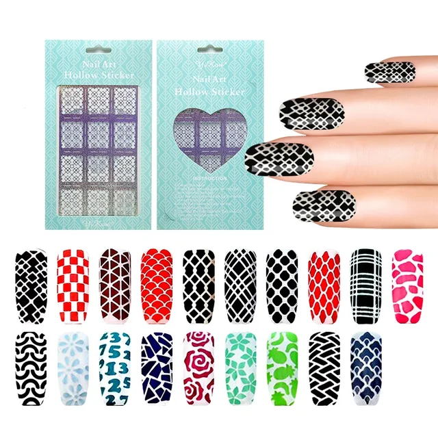New Arrival 12 Tips Sheet Nail Vinyls Easy Use Nail Art Manicure Stencil Stickers 6 Patterns Nail Stencils Sticker Buy Nail Stencil Nail
